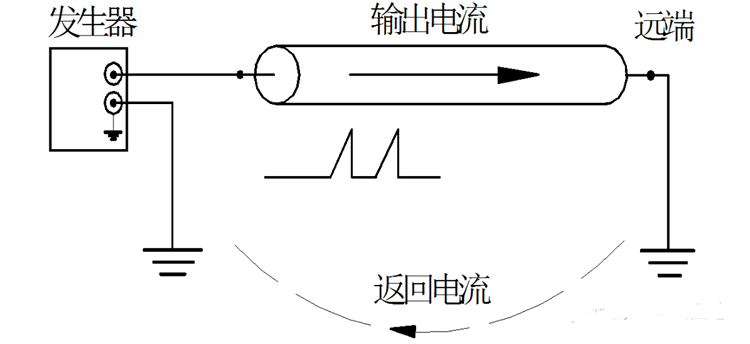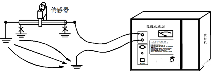 輸出電流在電纜線中沿箭頭方向流向遠端,通過大地返回發生器,將被識別電纜的所有芯線連到一起,能得到較清楚的信號。